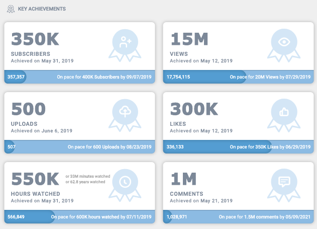 Going back to the vidIQ YouTube Channel, are we hitting those milestones? Are you hitting yours? We have something called Achievements that goes out, fetches your information that says, how are you doing, and allows you to share those milestones. Here’s a snapshot from our current achievements - pretty good, right?