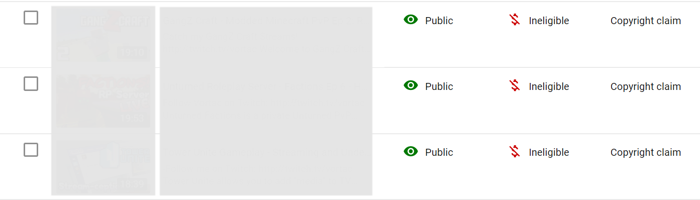 - Ineligible (red): You turned on monetization, but YouTube won't show ads.