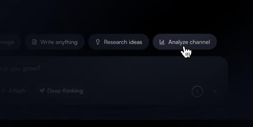 If you like ChatGPT for YouTube brainstorming, you'll love having a YouTube AI assistant that turns channel context into clear direction. Ask it to analyze your channel and generate a plan you can use today.