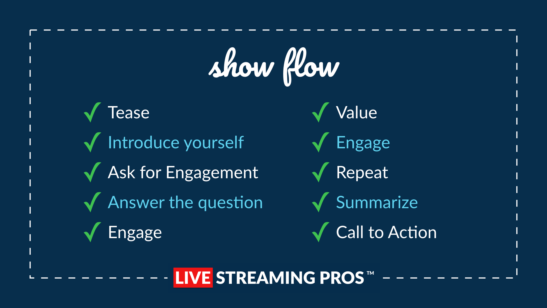 Luria Petrucci: Yeah. And I can actually give this to you in an image. This is the structure. I call it the show flow. So it matches very closely what you would do in a recorded video, so you're probably familiar with most of it, right?
