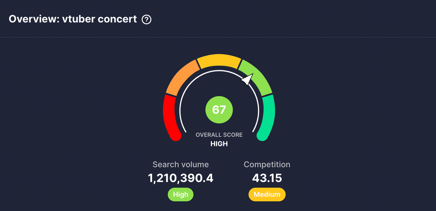 Keyword stats for Vtuber concert: