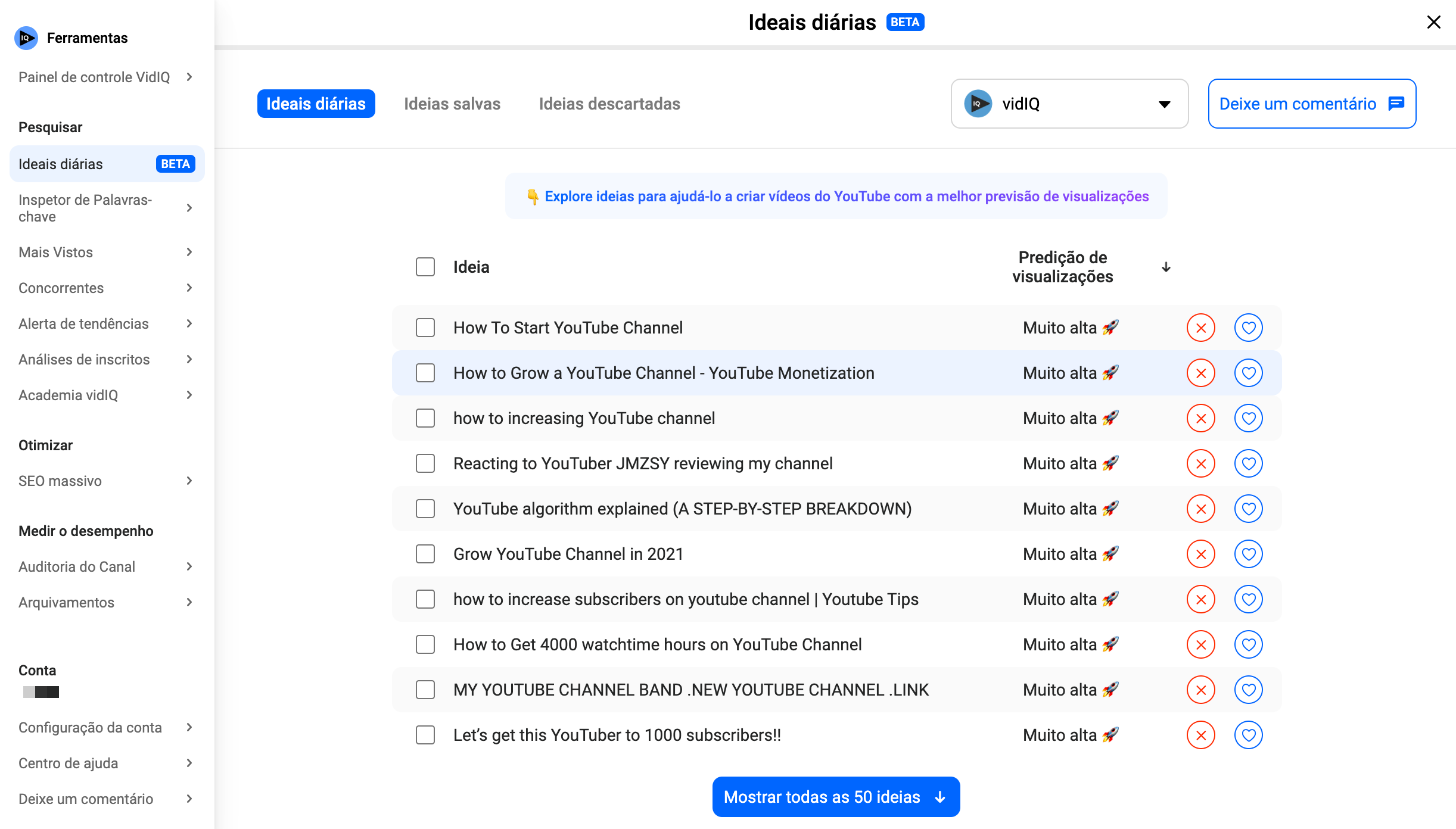 Generates 50 video ideas daily, amounting to 1,500 ideas per month, ensuring creators never run out of topics to explore.