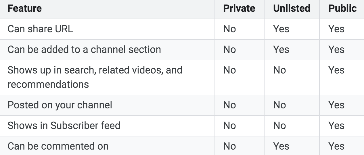 Lastly, private videos can only be viewed by you (and anyone else you grant permission). Like unlisted videos, they won’t appear on your channel or in YouTube search results.