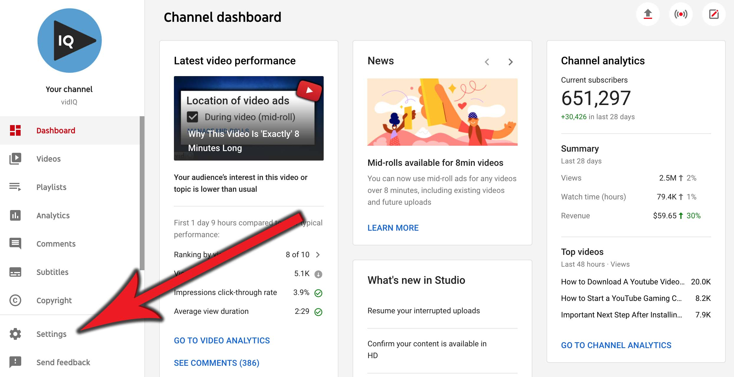 1. Go to your channel’s homepage and click the profile icon in the top-right corner of the screen. From the drop-down menu, select ‘YouTube Studio’.