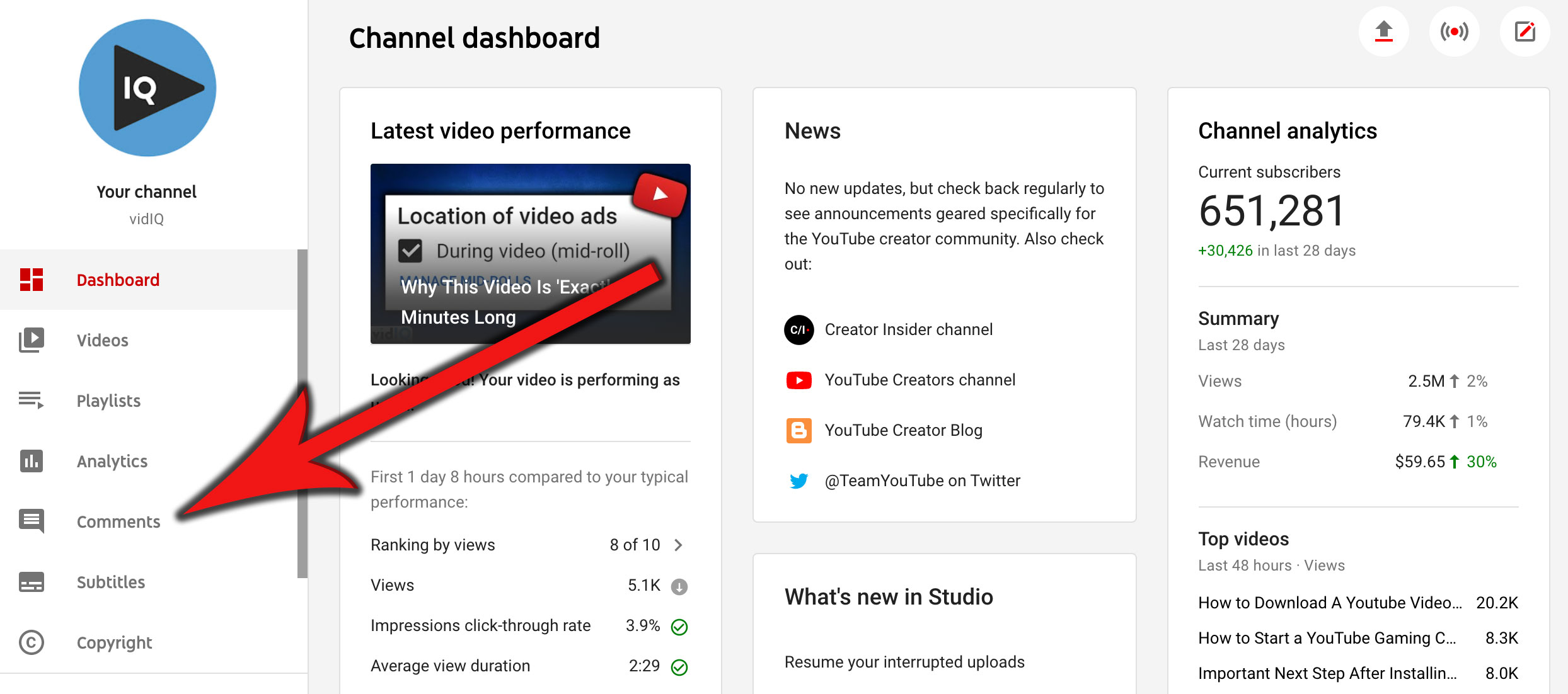 2. Go to the left-hand navigation bar and click ‘Comments’.
